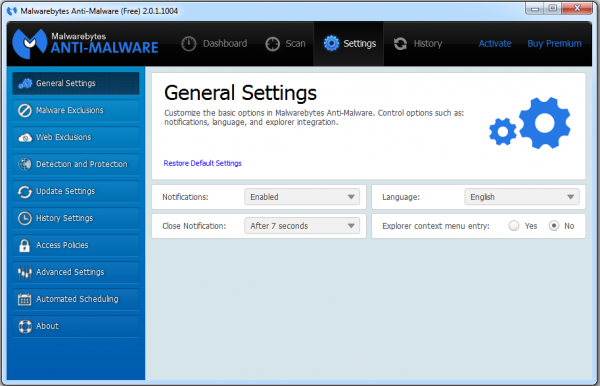 Der Nutzer hat in den Einstellungen von Malwarebytes die Möglichkeit, festzulegen, ob die Software mit dem System starten soll oder nicht. Wenn dies festgelegt wird, kann die Software schneller aufgerufen werden. Außerdem belastet die Software das System nur sehr geringfügig, weshalb es keine Rolle spielt ob das Programm mit Windows startet oder nicht. Wer die Pro-Version verwendet, profitiert sogar von einem aktiven Echtzeit-Systemscanner, der das System aktiv gegen Malware schützt, wenn diese aus dem Internet angreift oder das System über eine infizierte Datei anfällt. Die kostenlos erhältliche Version besitzt jedoch keinen Echtzeit-Systemscanner.