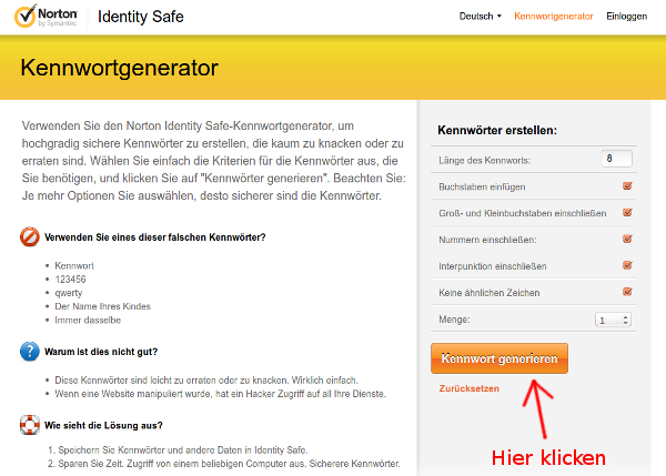 Mit dem Online-Tool von Norton können Sie sichere Passwörter erstellen.