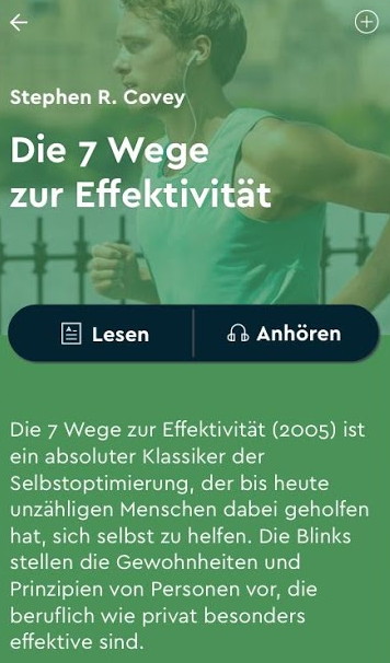 Die über 3000 Blinkist-Zusammenfassungen stehen den Nutzerinnen und Nutzern sowohl in Textform als auch vorgelesen im Audioformat zur Verfügung. Um das Angebot vollständig nutzen zu können, ist ein knapp 80 Euro im Jahr kostender Premium-Account von Nöten. Alternativ kann das Abo auch monatsweise für knapp 13 Euro abgeschlossen werden. Mit diesem erhalten die Kundinnen und Kunden vollständigen Zugriff auf alle von Blinkist angebotenen Schnellzusammenfassungen. Preislich entspricht das dem Kauf von etwa fünf bis acht Taschenbüchern im Jahr.