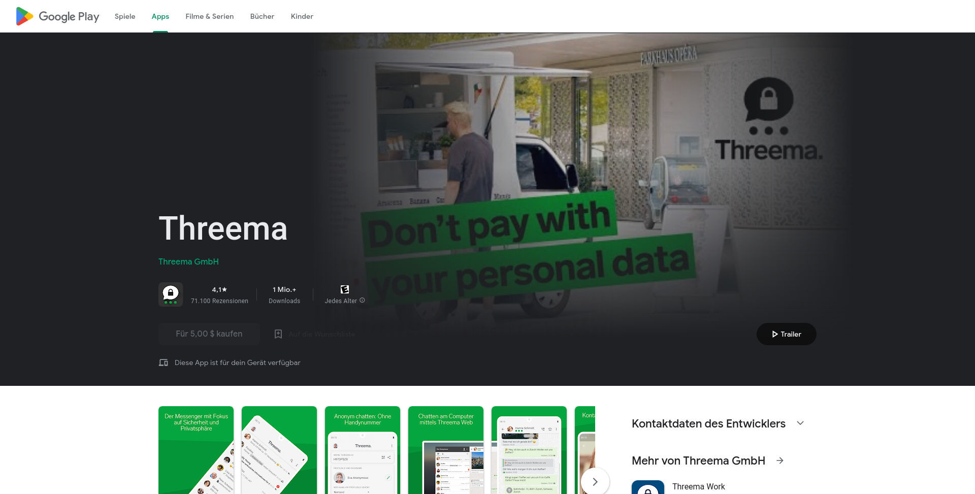 Threema ist nicht kostenlos wie WhatsApp. Für iOS und Android kostet die App aktuell um die 5 Euro. Das mag auf den ersten Blick teuer erscheinen, allerdings steht hier eine hohe Sicherheit im Vordergrund. Darüber hinaus ist Threema als Desktop-Version für Windows, macOS und Linux verfügbar.