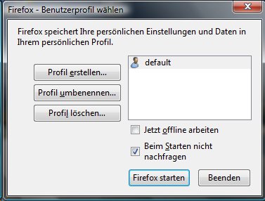 Firefox hat sogenannte Benutzerprofile, unter denen ein User den Browser verwendet. In einem solchen Profil werden die Einstellungen und lokalen Daten gespeichert. Von dem Profil bekommt man eigentlich nicht viel mit, da man es in der Regel nicht zu ändern braucht. Allerdings gibt es auch Fälle, wo ein Profil fehlerhaft ist und Firefox nicht mehr korrekt läuft, in dem Fall sollte man das Profil löschen und ein Neues anlegen. Oder man möchte zwei verschiedene Profile nutzen, um im Internet zu surfen. Die Verwaltung der Profile erfolgt über den Profilmanager. Dieser ist allerdings versteckt und kann nur mit einem Trick aufgerufen werden.