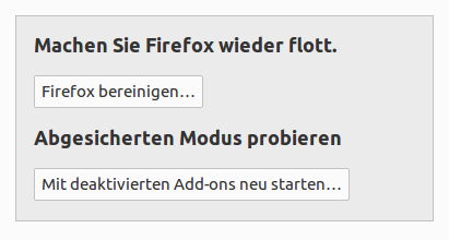 Außerdem kann auch eine Bereinigung von Firefox viele Probleme mit dieser Software lösen. Dazu ruft man in der Adresszeile "about:support" auf und klickt auf "Firefox bereinigen".