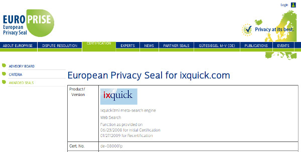 Was ist das Besondere an Ixquick? Diese Metasuchmaschine hat die Zielsetzung, nicht nur die besten Suchergebnisse zu liefern, ebenso wichtig ist der Schutz der Privatsphäre des Nutzers. Außer der Aufsummierung der Anfragen pro Tag werden keine Userdaten gespeichert. Das Europäische Datenschutzkonsortium EuroPriSe hat die Übereinstimmung mit dem EU-Datenschutzrecht zertifiziert.