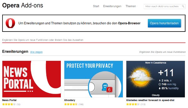 Mit den Plattformen Unite und Widgets hob sich der Browserhersteller Opera von den anderen Browsern ab. Der Erfolg der Plattformen ist jedoch aus geblieben, so dass mit Opera 12 Unite und Widgets eingestellt werden. Dementsprechende Hinweise sind auf den Seiten der beiden Erweiterungsmöglichkeiten zu finden. Opera will ab Version 12 nur noch auf die Erweiterungen in Form von Extensions setzen.