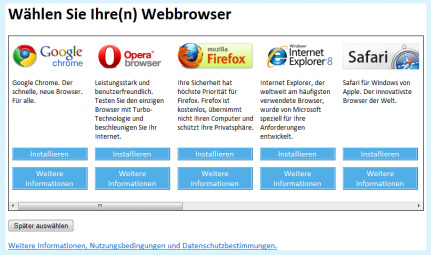 Angeboten werden die gängigen Browser, wie Google Chrome, Safari, Opera, IE und Firefox. Aber welchen soll man nun verwenden? Einen Browservergleich zwischen dem Internet Explorer und Firefox gab es hier bereits. Wenn man als Benutzer auf Nummer sicher gehen will, ist Mozilla Firefox eine gute Wahl.