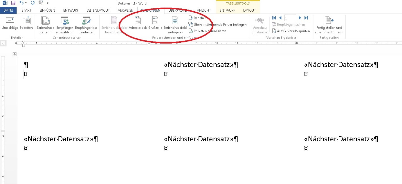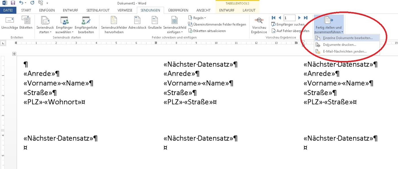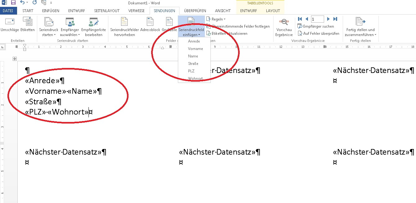 Adressen mittels Seriendruckfunktion über eine Datenquelle einfügen