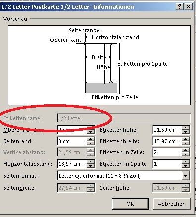 Hier öffnet sich wieder unser bekanntes Untermenü zum Einrichten der Etiketten: