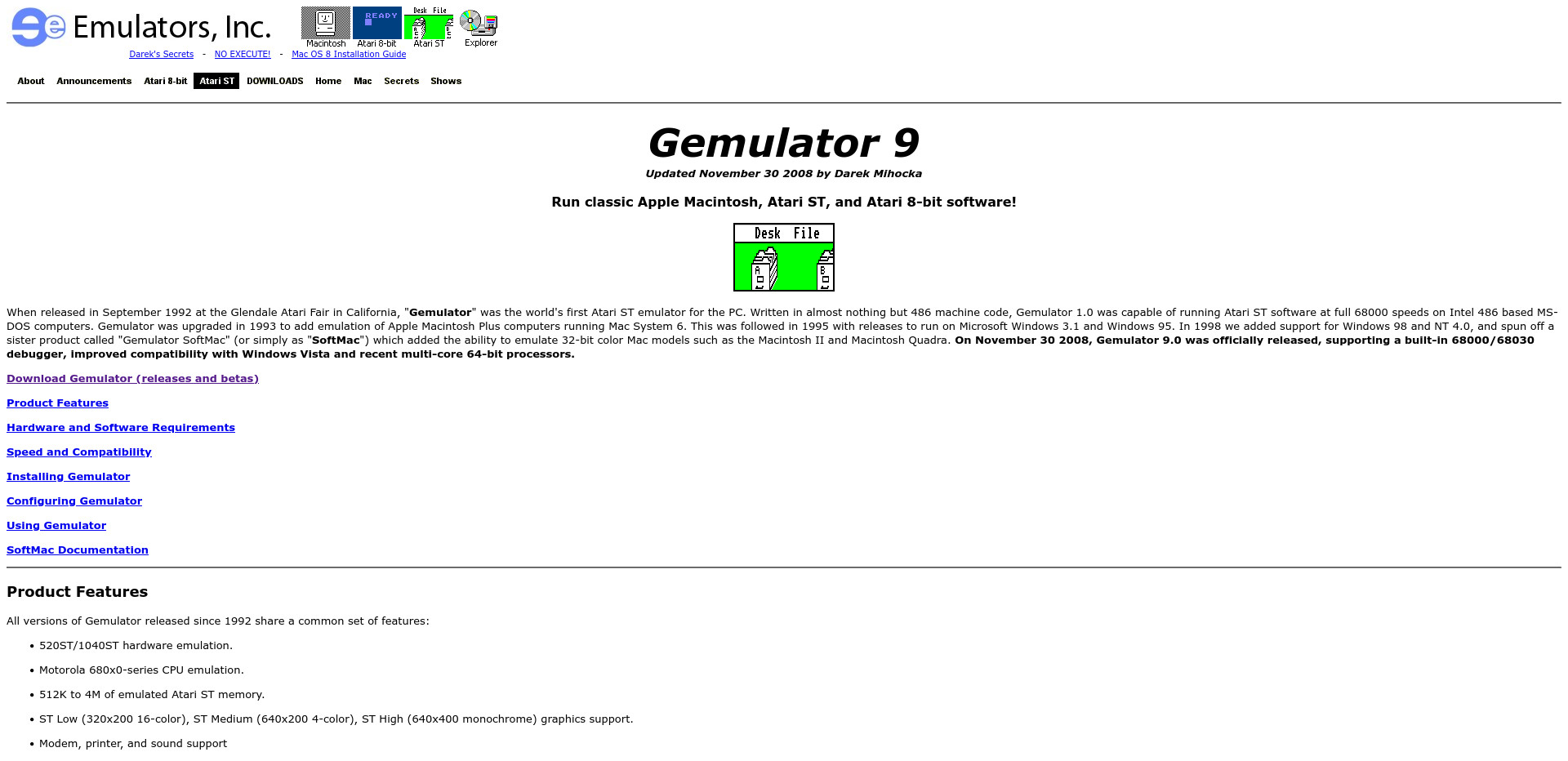 Die Gemulator Software ist ein Emulator, der von der Firma Emulators.com entwickelt wurde. Sie ermöglicht es, den Atari ST und den Atari 8-bit Computer auf modernen Computern auszuführen. Das bedeutet, dass man Software von diesen alten Systemen auf einem modernen Computer installieren und ausführen kann. Die Gemulator Software ist ein wichtiger Bestandteil der Werkzeuge, die von Retro-Computing-Enthusiasten verwendet werden, um alte Computersysteme zum Laufen zu bringen und zu erhalten.