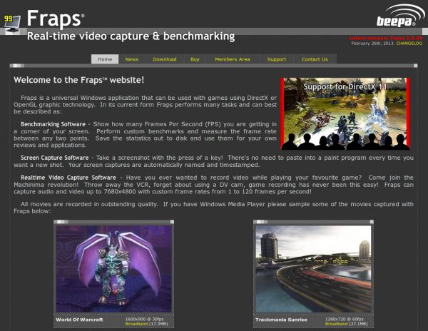 Die kostenlose Version von Fraps kann auf der offiziellen Webseite oder anderen Partnerseiten heruntergeladen werden.