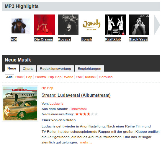 Auch bei einem der ältesten Deutschen Musik-Anbietern, dem bereits über 15 Jahre alten mp3.de, gibt es unter den mehr als 1 Million verfügbaren Songs rund 100.000 kostenlose von verschiedensten Künstlern. Auch Last.fm das personalisierte Internetradio bietet Gratis-Downloads an.